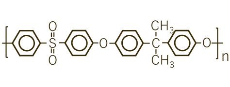 スルフォン基と芳香族で構成された分子鎖で、スルフォン基が熱安定性・酸化安定性を、芳香族基が耐熱性・耐薬品性を付与している。