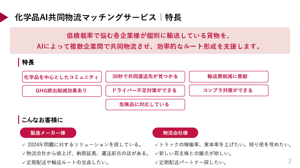 「化学品AI共同物流マッチングサービス概要」
